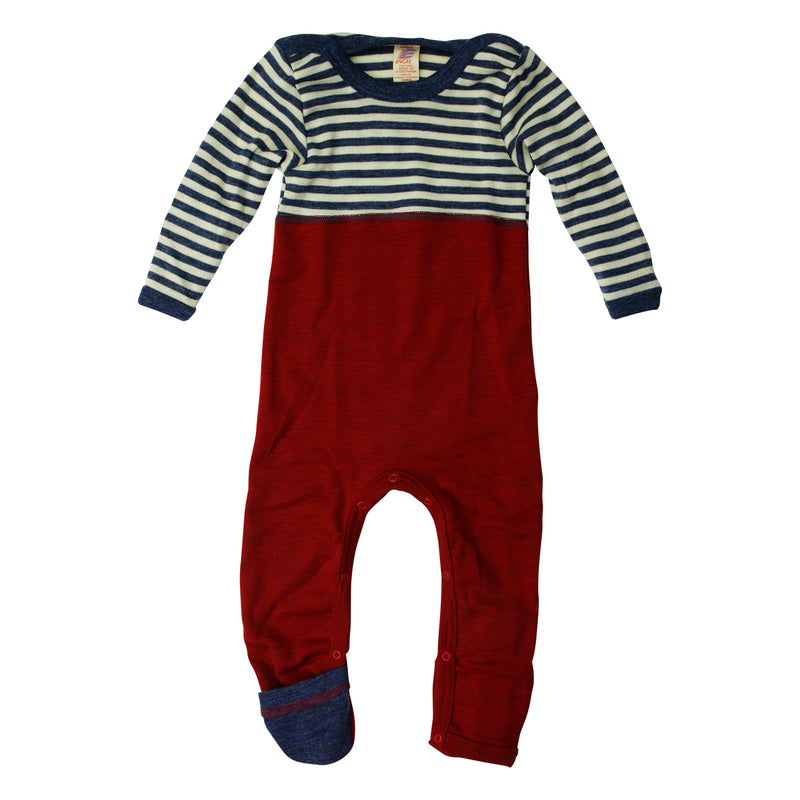 Die durchgehende Knopfleiste erleichtert das Wickeln und Anziehen. Dank der natürlichen Selbstreinigung der Wolle reicht oft schon einfaches Lüften aus. Bei Bedarf kann der Overall im Wollwaschgang gereinigt werden.